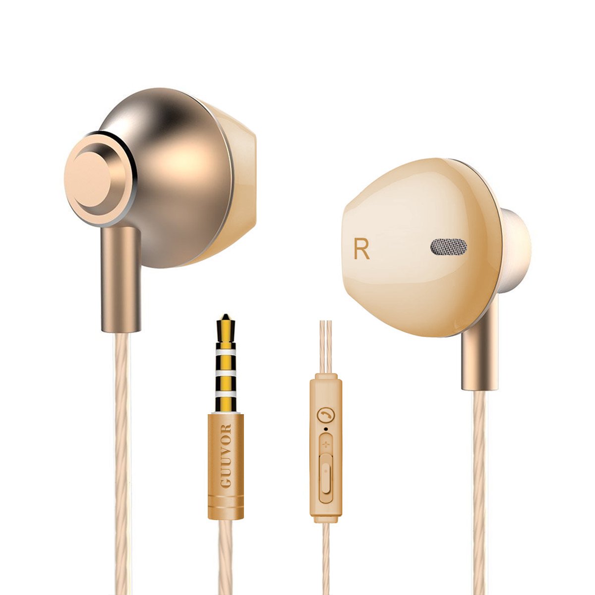 Metal Cuffie con cancellazione del rumore, Cuffie In-Ear Bassi Potenti Alta Definizione con Microfono e Controller, Headset Stereo 3.5 mm per iPhoneiPodiPadLettori mp3Samsung GalaxyNokiaHTCNexusBlackBerry etc.(Oro) descrizione